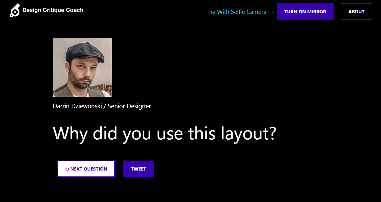 Сайт задає користувачам випадкові питання про дизайнерські рішення та готує їх до можливої критики. Дизйнерам пропонують відповісти на питання після того, як робота над проектом завершена, але до його презентації широкому загалу. Передбачається, що ці питання і відповіді допоможуть дизайнерам підготуватися до будь-якої ситуації та підвищать їх впевненість в тому, щоб представити своє ремесло світу.