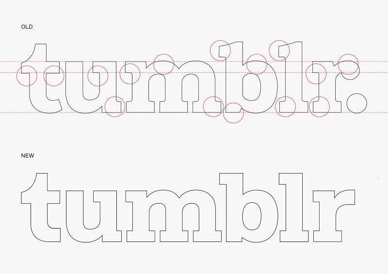 Фахівці з типографіки “оживили” логотип Tumblr і створили кастомний шрифт Favorit. Зайві заокруглення у символах «t» і «r» були обрізані. Інші букви отримали більш тонкі оновлення: очищення зайвих нюансів атрибутів і підгонка під архітектуру. Такі зміни допомогли оптимізувати логотип для невеликих екранів, не втрачаючи своєї суті.