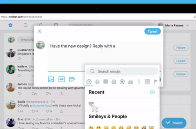 Some of you got an opt-in to try it now. Check out the emoji button, quick keyboard shortcuts, upgraded trends, advanced search, and more. Let us know your thoughts! pic.twitter.com/G8gWvdHnzB