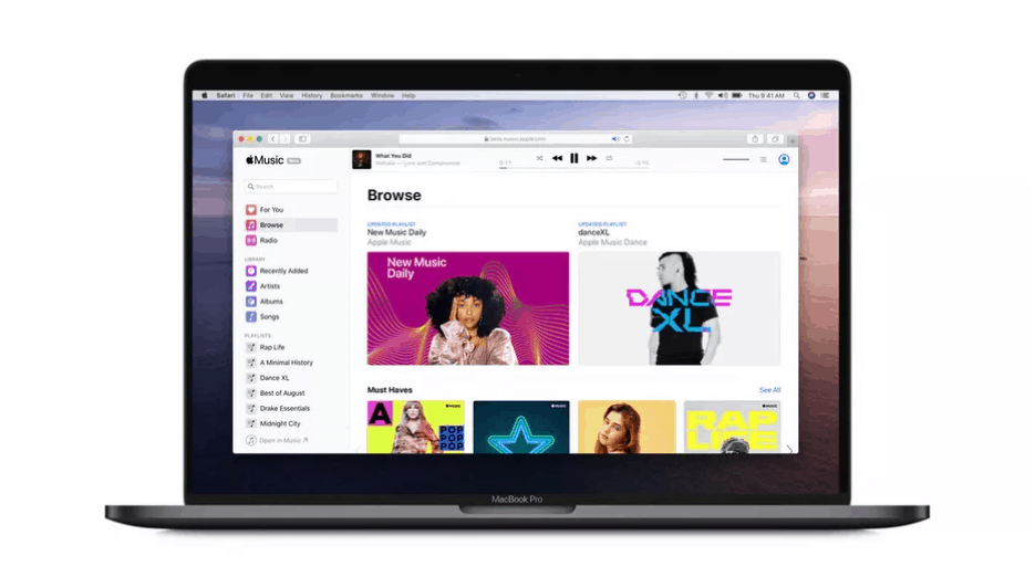 Тепер користувачі можуть слухати музику через ПК, не встановлюючи застосунок і без iTunes. Версія доступна поки лише для вже зареєстрованих користувачів (оформити передплату у вебплеєрі тимчасово неможливо). Однак у компанії додаватимуть новий функціонал до сервісу впродовж найближчого часу.
