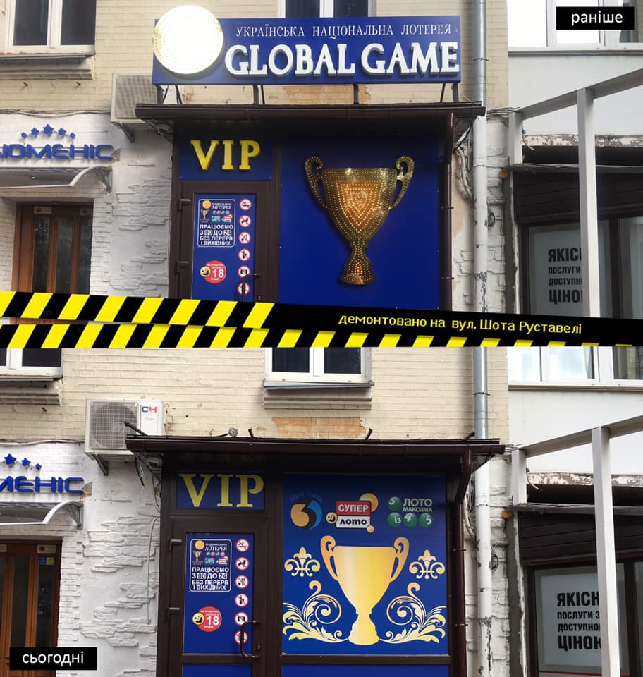 «Ще одна лотограйка відіграла своє, тепер вже на Палаці спорту. І «за компанію» демонтували ще 8 рекламних засобів навколо», – написав начальник управління з питань реклами КМДА Олександр Смирнов.