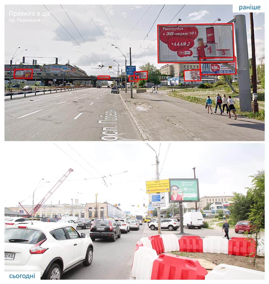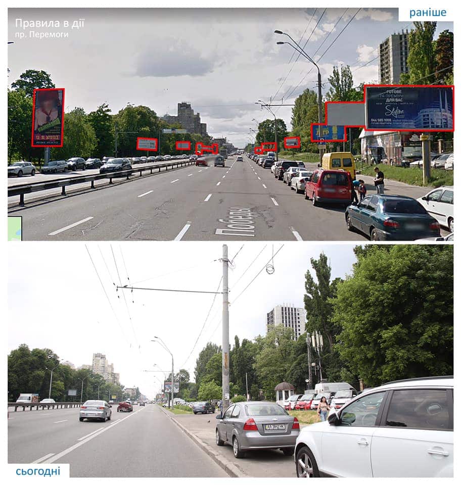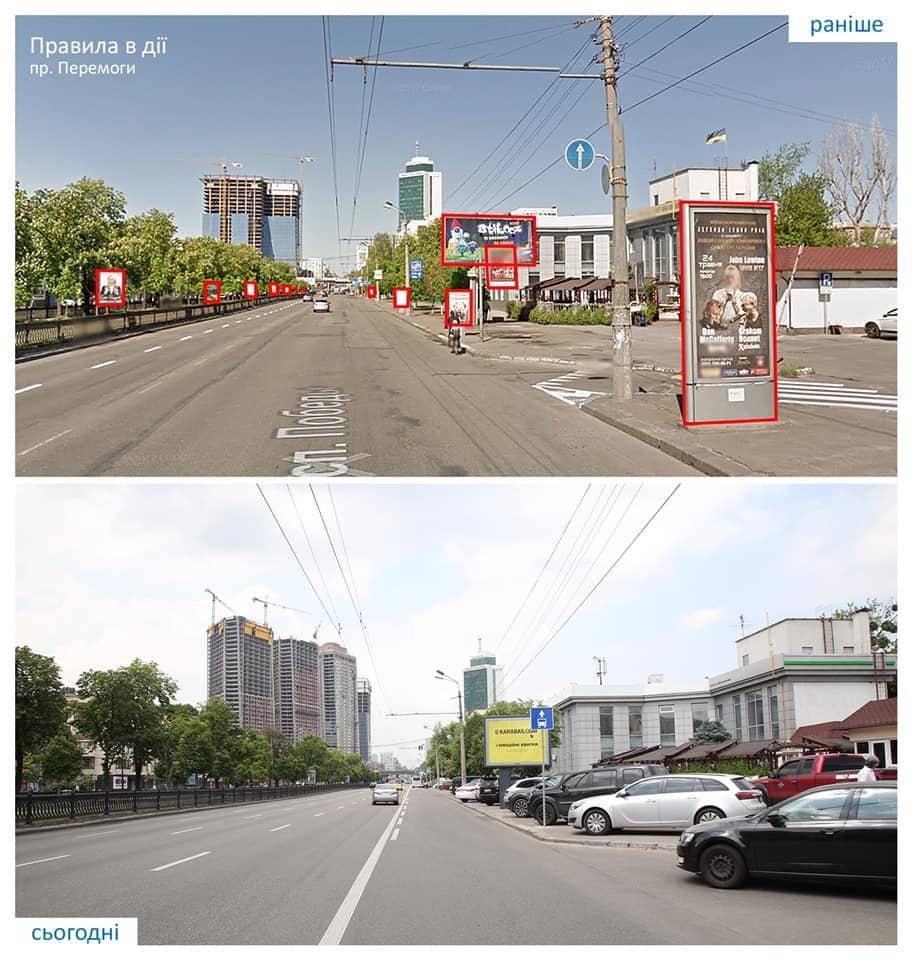 Голова управління з питань реклами КМДА Олександр Смирнов повідомив, що замість незаконної реклами на проспекті встановили 42 конструкції площею 541 квадратний метр. До демонтажу площа реклами становила 4,5 тисячі квадратних метрів.