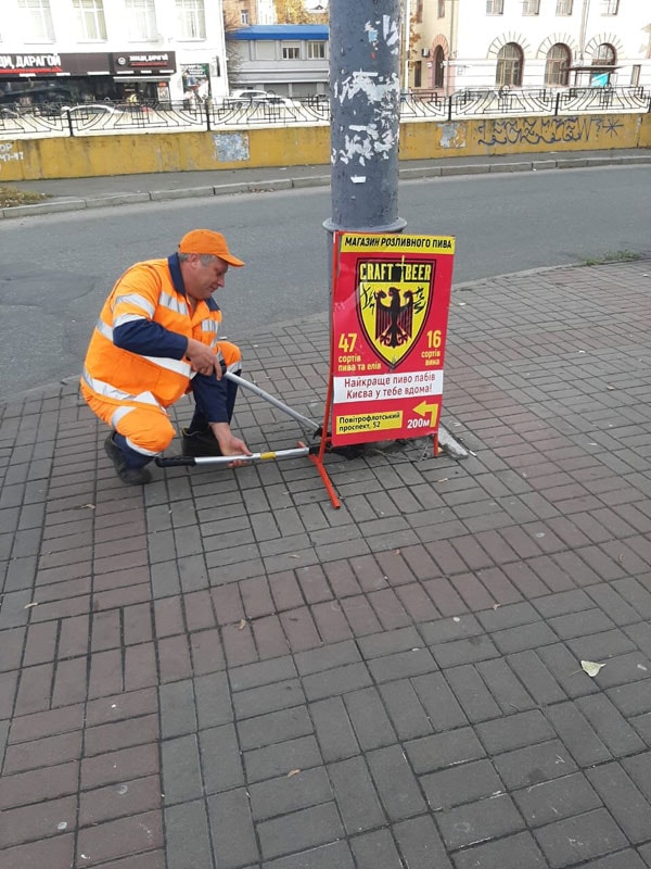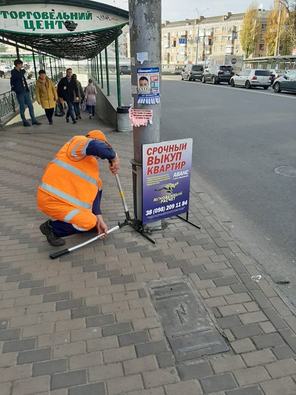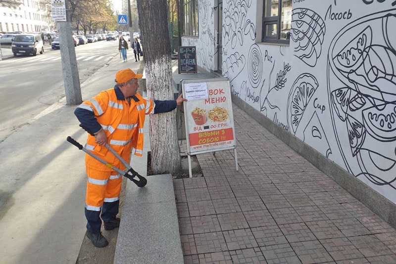 На Солом’янці п’ять вулиць очистили від незаконних рекламних щитів на тротуарах.