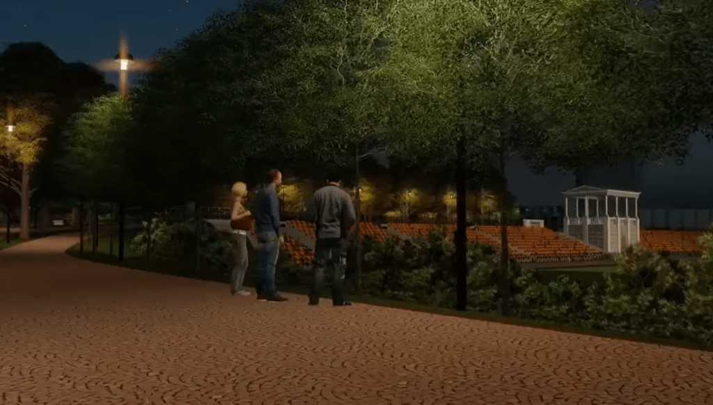 На території з’являться бігові та велодоріжки, вуличні тренажери, фітнес клуб, аквазона з басейном та фонтаном, екстрім парк.