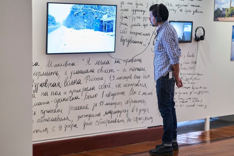Роботи учасників охоплюють період від Революції Гідності та тимчасової російської окупації Кримського півострова й до війни з Росією на сході України. Учасники: Євген Никифоров, Петро Армяновський, Оля Михайлюк, Роман Мінін, Євгенія Білорусець, Кристина Норман, Лада Наконечна, Микола Рідний, Юрій Коваль, Антон Поперняк, Роман Михайлов, Жанна Кадирова, Світлана Бєдарєва. Також на виставці представлені втрачені роботи із колекції Платформи «Ізоляція» (Даніель Бурен, Паскаль Мартін).