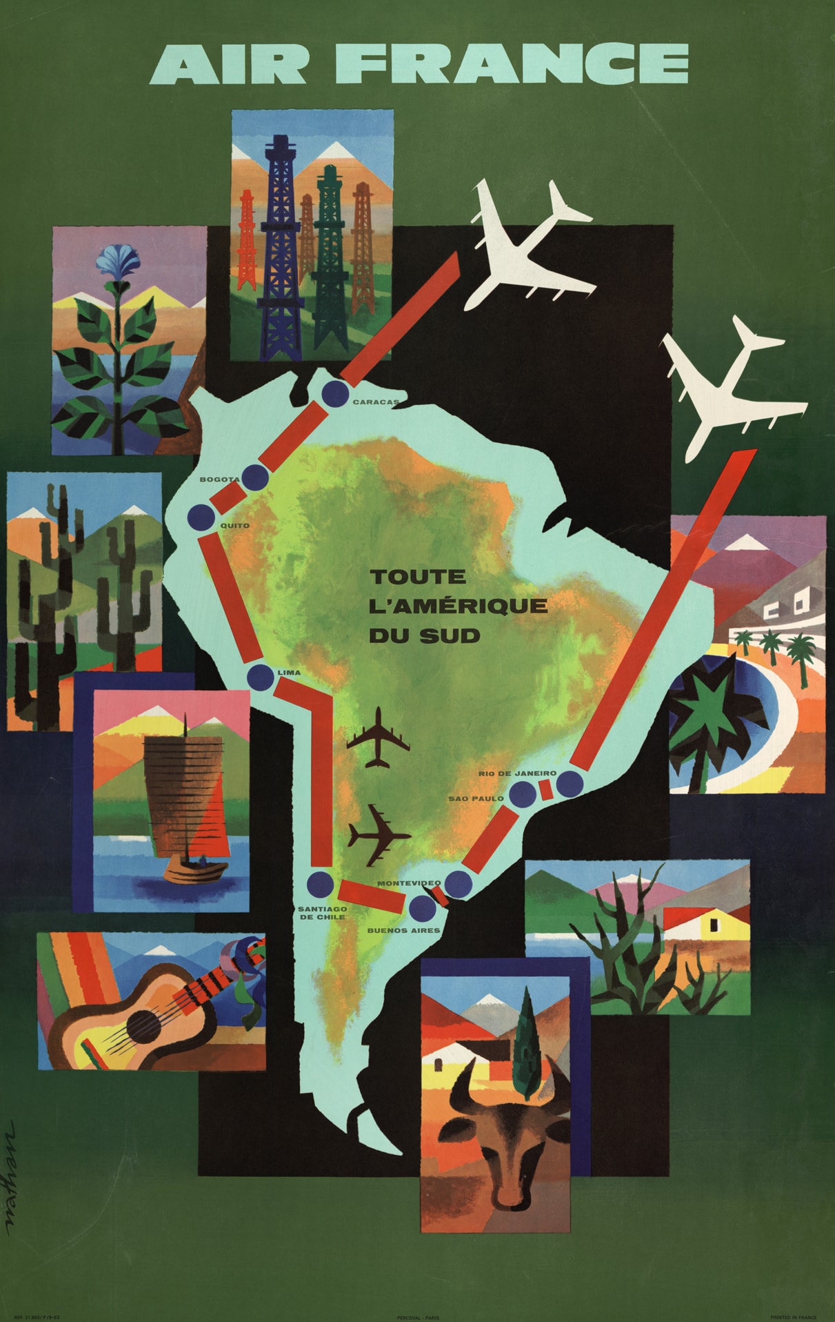 У 1950-х роках Air France, одна з найстаріших авіакомпаній світу, почала замовляти художникам постери, які анонсують перельоти. Незабаром для Air France вже малювали найкращі французькі дизайнери й художники-плакатисти: Кассандр, Жан Колін, Жорж Матьє, Ерве Морван та інші.