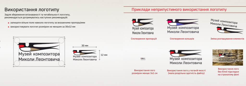 В основі логотипу – графічне зображення ластівки – пташки, яка асоціюється із всесвітньо відомим «Щедриком» Миколи Леонтовича. У щедрівці її називають зі зменшувальним відтінком слова «ластівочка».