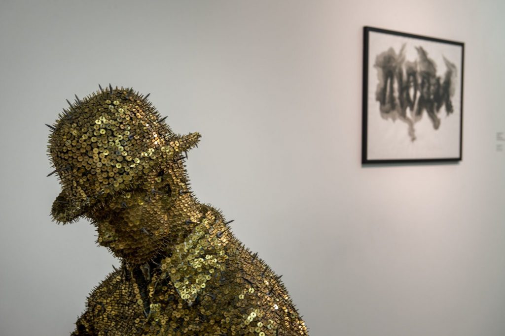 До створення виставки «Коли віра зрушує гори» долучилися 45 українських і міжнародних митців. На ній представлені твори українських митців, зокрема Нікіти Кадана та Олексія Сая.