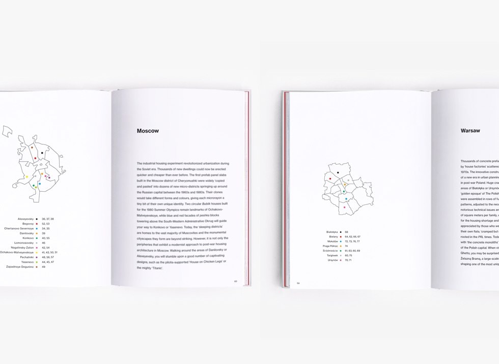 В книзі також можна побачити панельну забудову Східного Берліна, модерністські квартали Варшави, Будапешта та спальні райони Москви. Автори пишуть, що в цих місцевостях мешкає більшість містян, районам не приділяли належної уваги впродовж десятиліть. В книзі всього шість розділів та передмова від журналіста-письменника Крістофа Бінленда, а ще карти та довідки про відзняті будівлі.