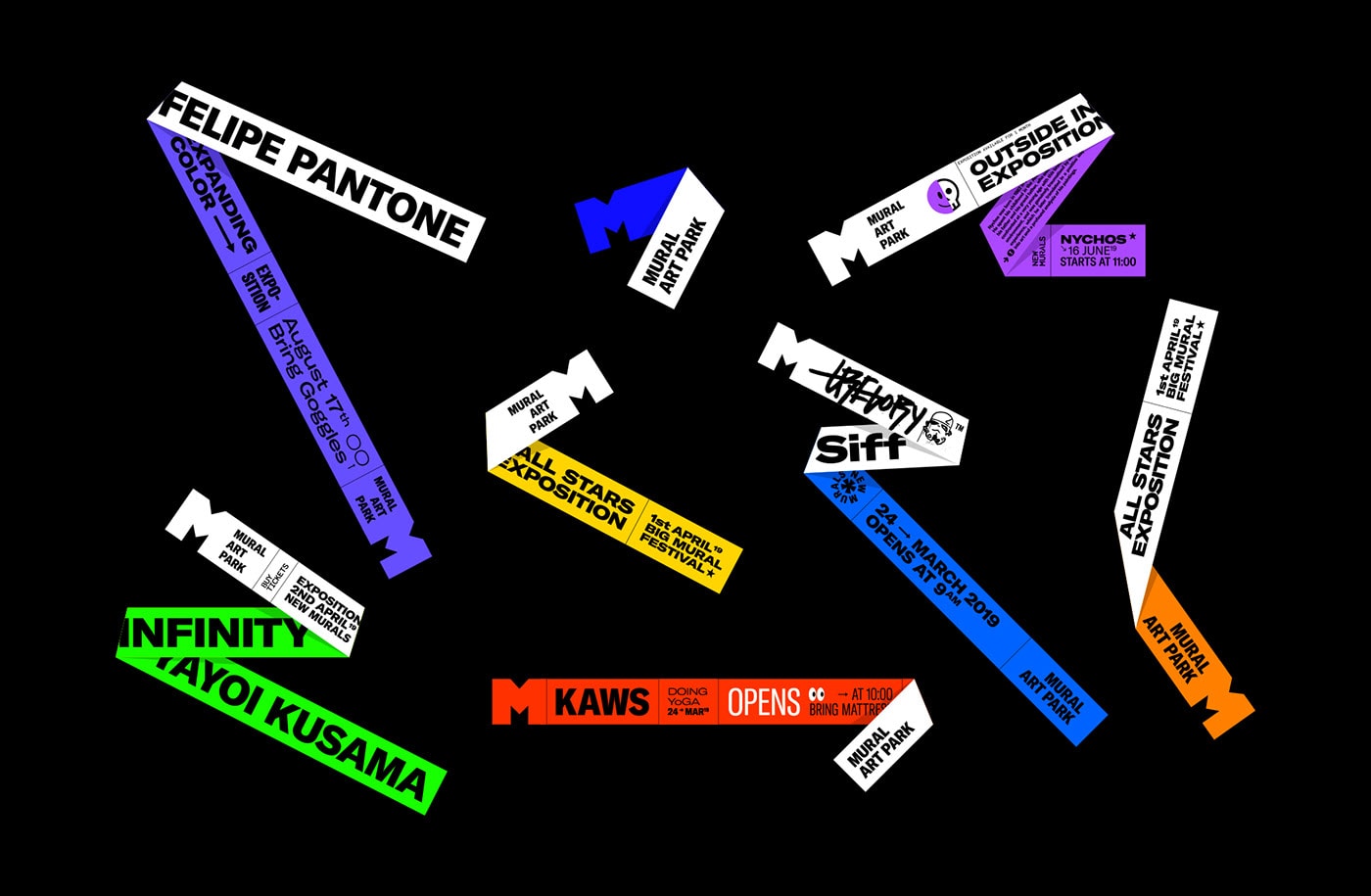 Команда розробила динамічний логотип, який складається з літери “М”. Логотип символізує гнучке «полотно», яке може бути перетворено в місце для розміщення будь-якого муралу. Логотип розтягується, щоб охопити більше мистецтва і природи в різних пропорціях, розмірах і деталях.