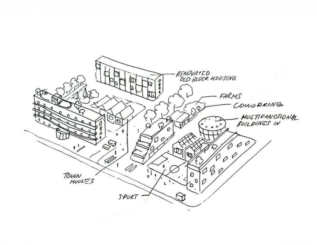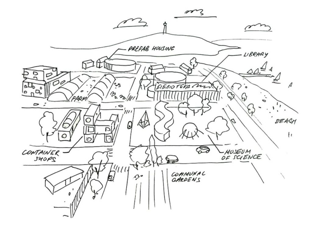 Художники, архітектори, дизайнери, музиканти, підприємці та активісти тестуватимуть свої ідеї на вулицях міста, які будуть розчищені від руїн. Це будуть квартали експериментів – модульне житло, комунальні сади, ферми, громадські та культурні простори, профінансовані спільнокоштом. Українці разом будуть проходити успішні ітерації, перевіряти гіпотези та трансформувати прототипи в довгострокові проєкти.