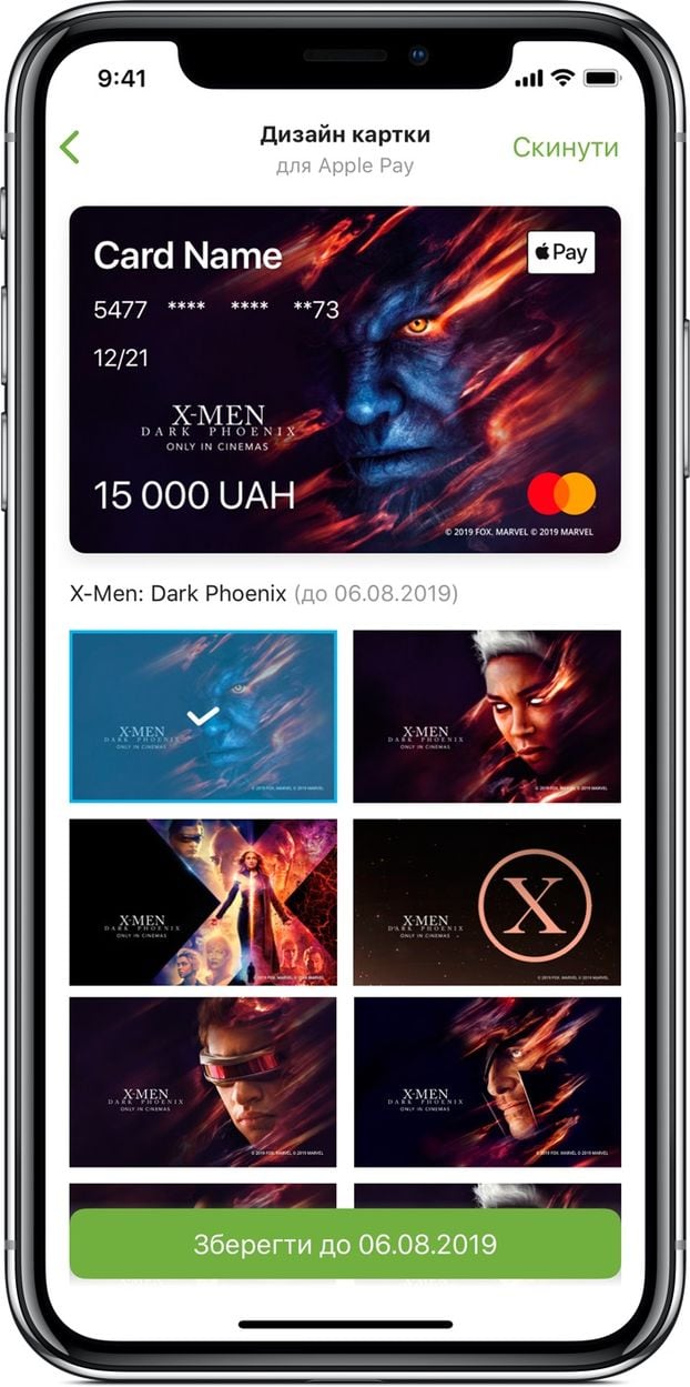 Тепер користувачі сервісу отримали можливість підбирати оригінальну обкладинку карти прямо в додатку Privat24. Уже сьогодні клієнтам банку доступні віртуальні дизайни карт з героями фільму «Люди Ікс: Темний Фенікс».