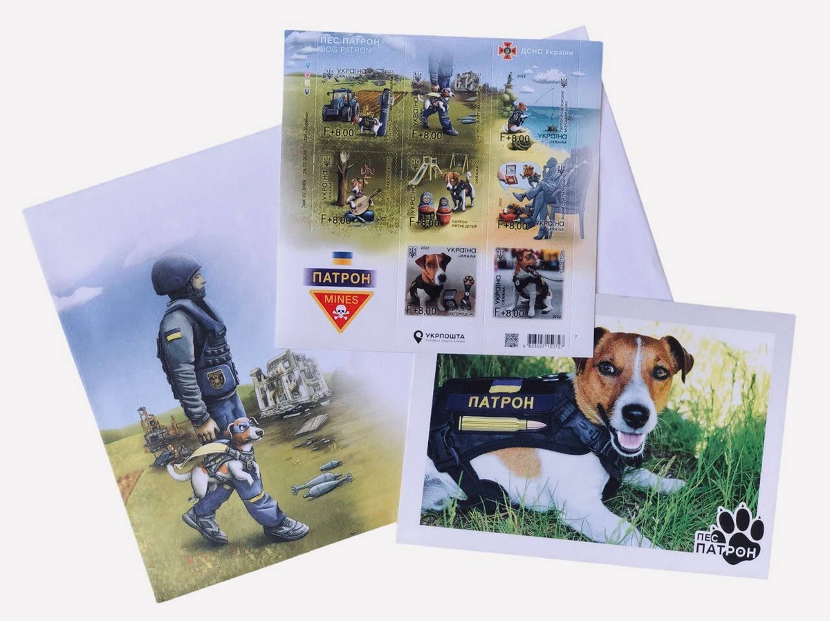 Укрпошта 30 серпня випустить першу благодійну поштову марку, що зображає пса Патрона та розповідає про те, як сапери допомагають зберегти життя дітей і фермерів та забезпечують проходження судів.
