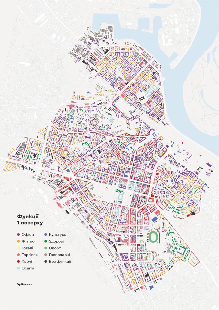 Досліджували 1700 гектарів у центрі Києва та зібрали дані про функцію поверхів, доступність території та озеленення, вуличні об‘єкти, бізнеси, дерева та активні фасади, а також вік будівель і пам‘ятки. Всю цю інформацію відобразили на мапі. Частину даних збирали студенти на курсах в школі Урбанина та на курсах Projector з урбан дизайну, частину – представники Агентів Змін.