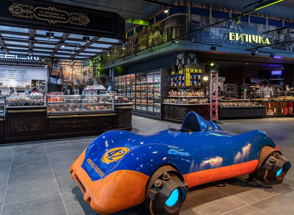 У магазині площею 2700 м² відтворено альтернативну реальність: суміш ретроспективи у напіввигаданий світ і презентація найсвіжішого та найкращого, що є просто зараз у нашій сучасності.