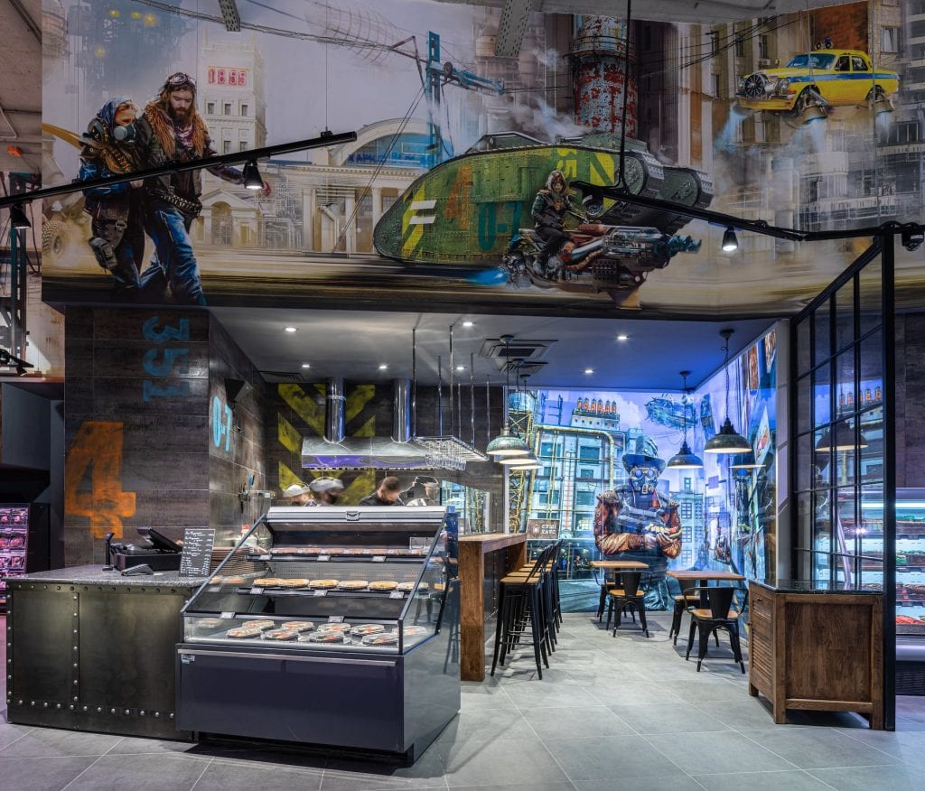 В оформленні Сільпо у стилі дизельпанк брали участь відомі харківські митці: тут є графіті Гамлета Зінковського та маска Боба Бассета.