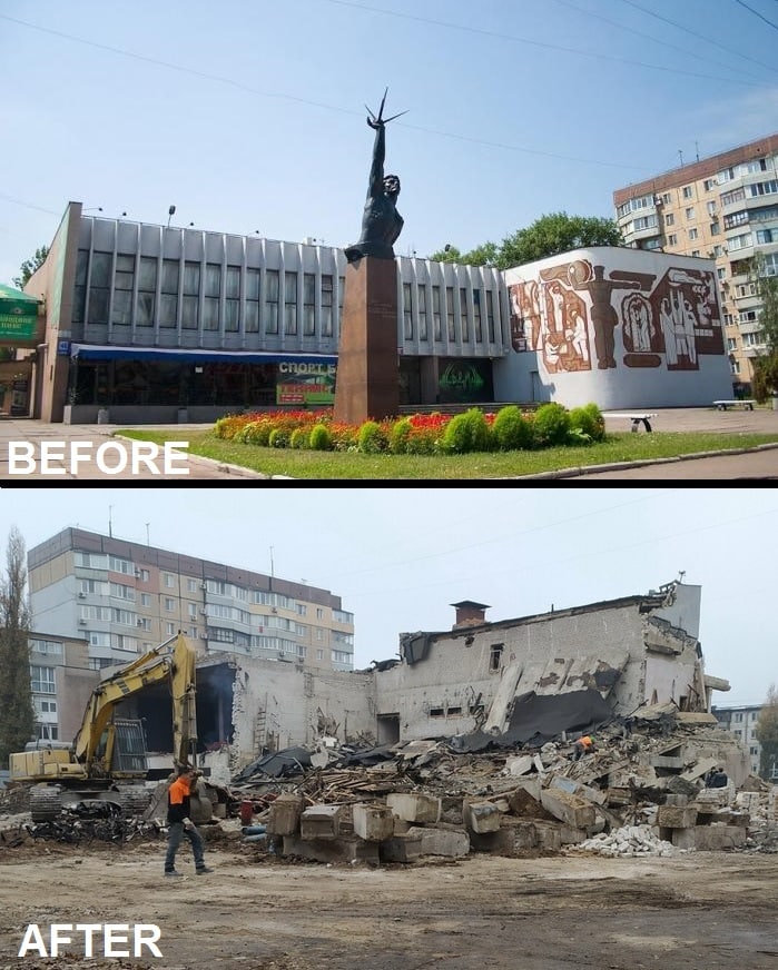 «Панно на фасаді зображувало технічний і науковий прогрес, дружбу народів і символи миру. Замість кінотеатру, який був у приватній власності з 1997 року, тут збудують торговий центр. А поки що на площі перед загиблим кінотеатром організувалася стихійна парковка», – пише Ukrainian Modernism.