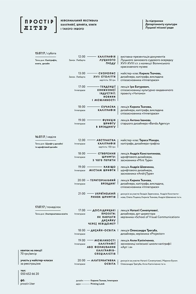 15-17 июля в Луцке будет проходить фестиваль шрифта, каллиграфии и книг «Простір літер». Организатором выступает дизайнер и каллиграф Кирилл Ткачев.