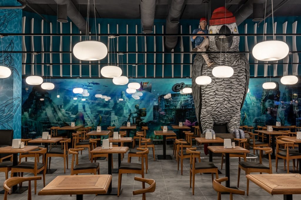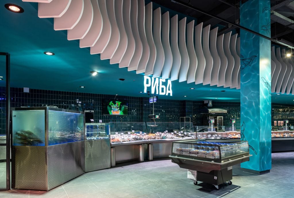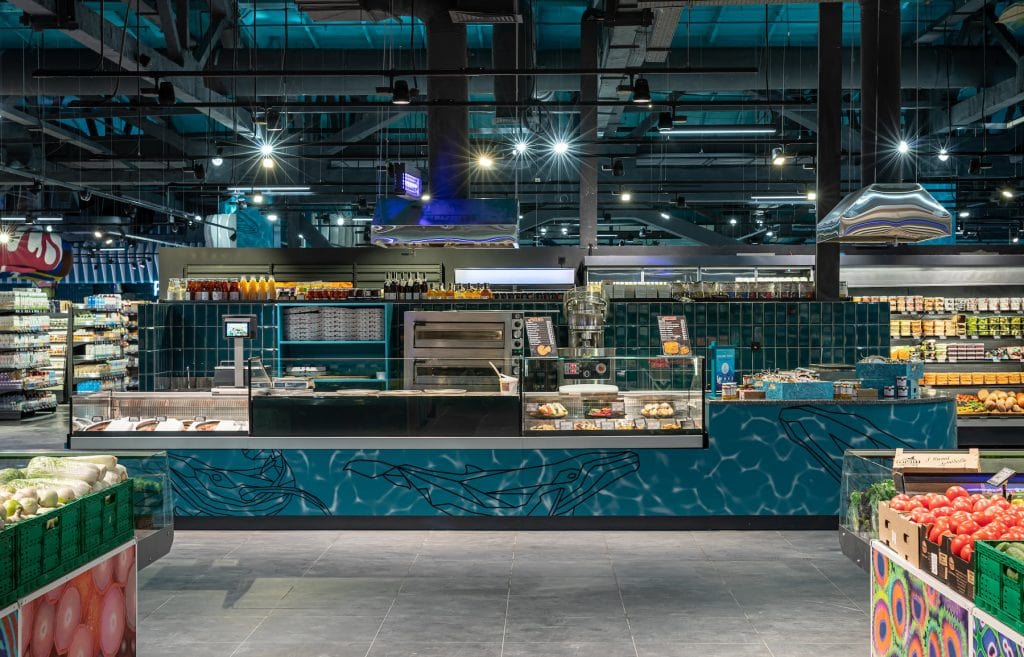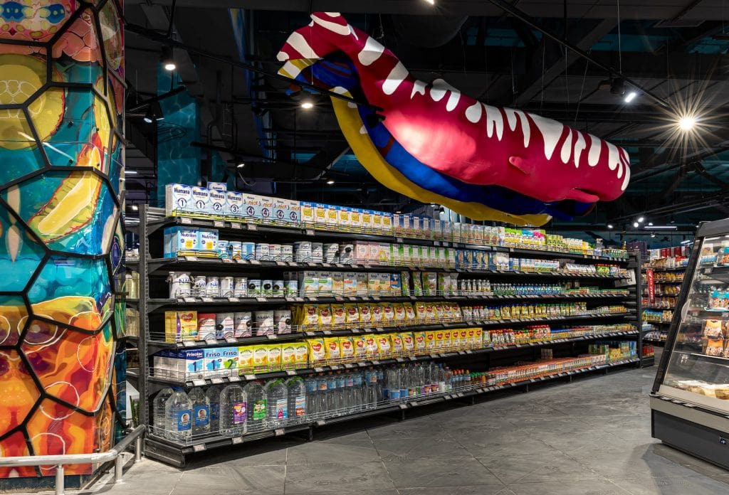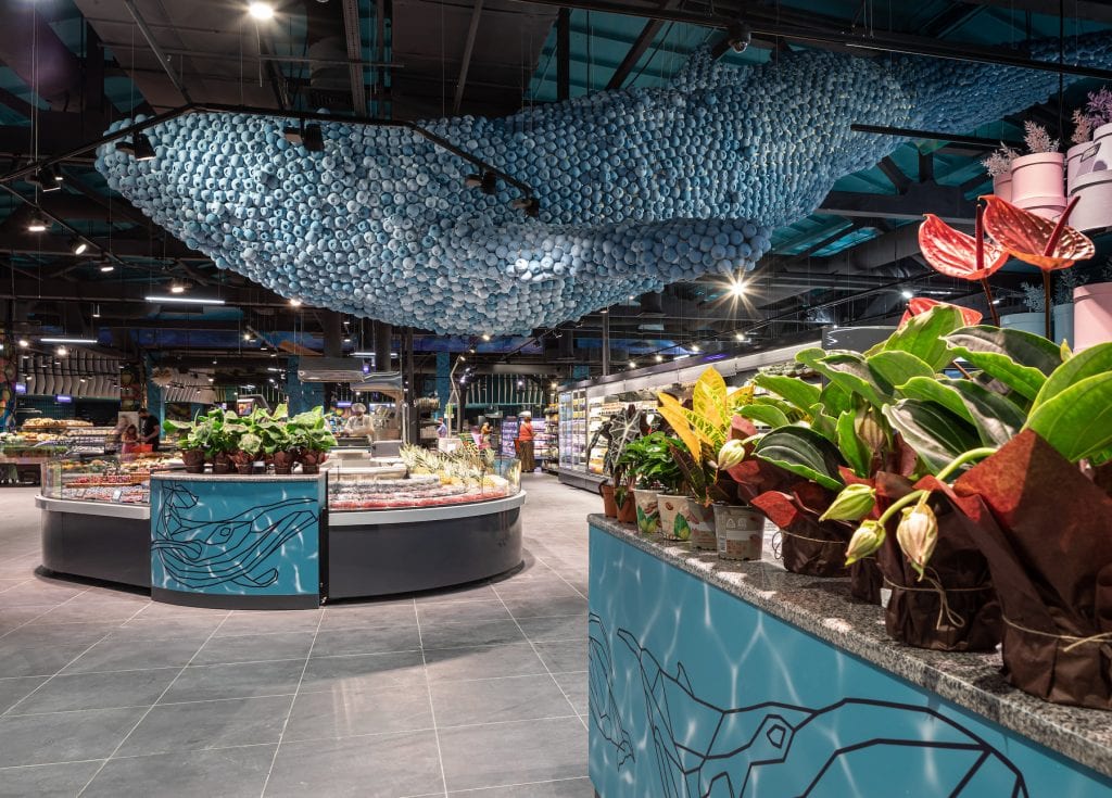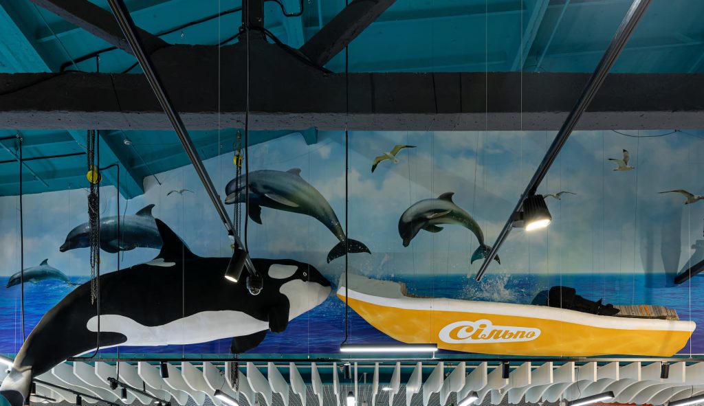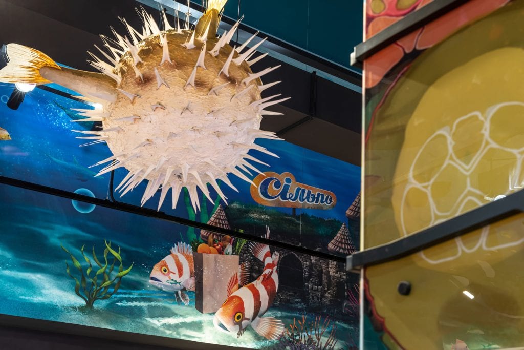 Над відділом екзотичних овочів і фруктів пірнають дивовижні мешканці океану: скат-лимон, черепаха-ананас, черепаха-пітахая, риби-їжаки з кошиками «Сільпо», а інтерактивний кит з лохини пускає фонтан.
