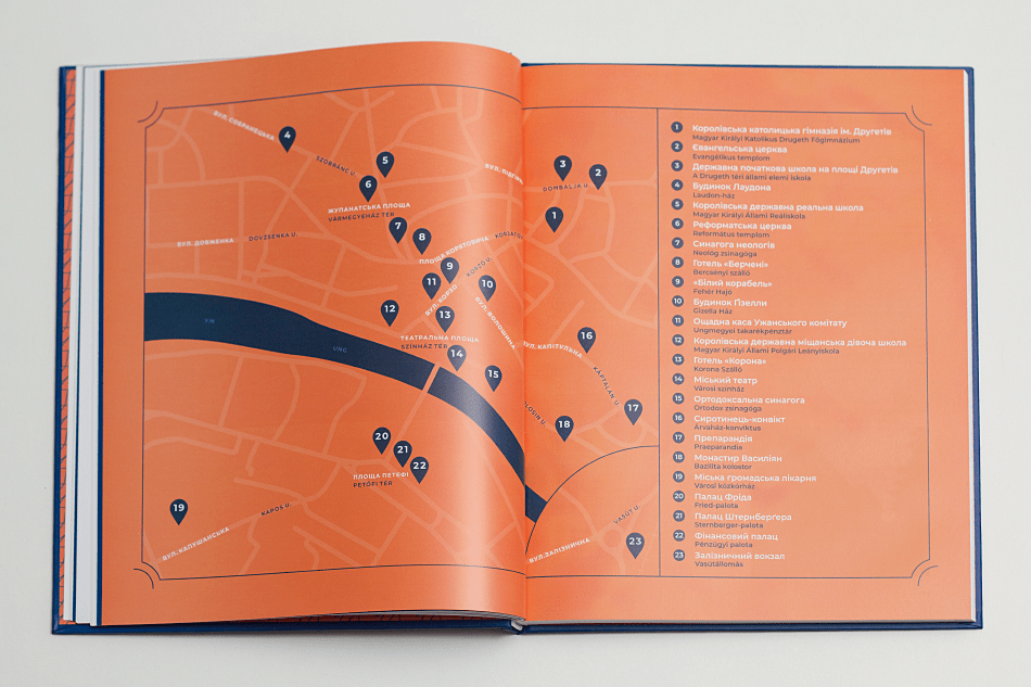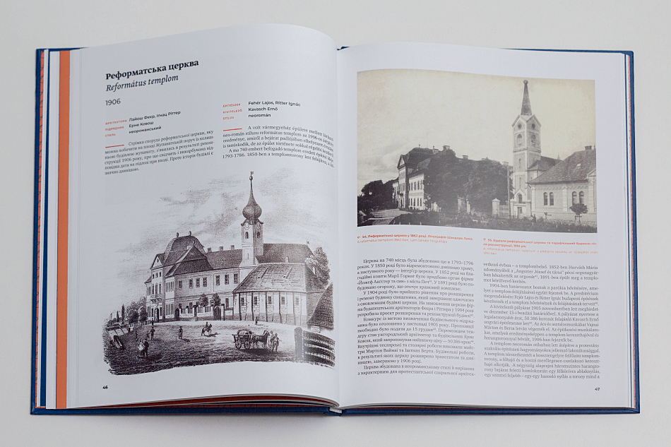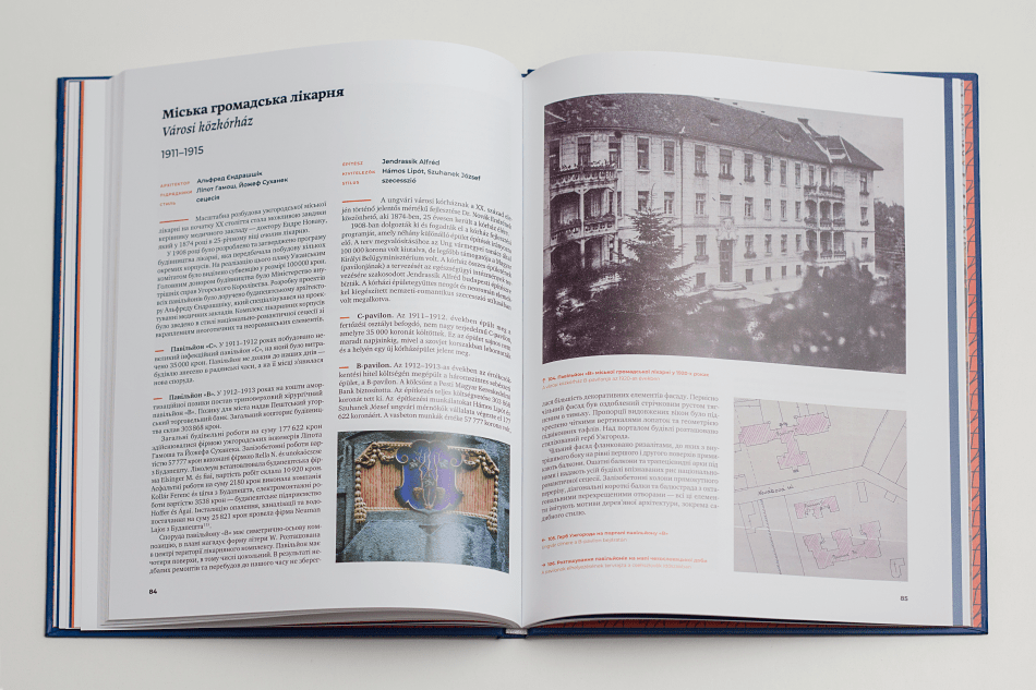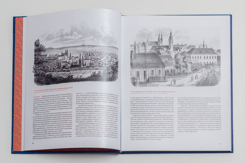 Двомовне видання українською та угорською мовами містить матеріали досліджень, над якими команда працювала впродовж двох років. Окрім історії та опису 23 ключових будівель міста, альбом-дослідження містить розділи про стилі, що були на той час актуальними на території монархії, та біографії архітекторів. Об’єкти розміщені у книзі відповідно до мапи, тож туристи можуть використовувати альбом як путівник.