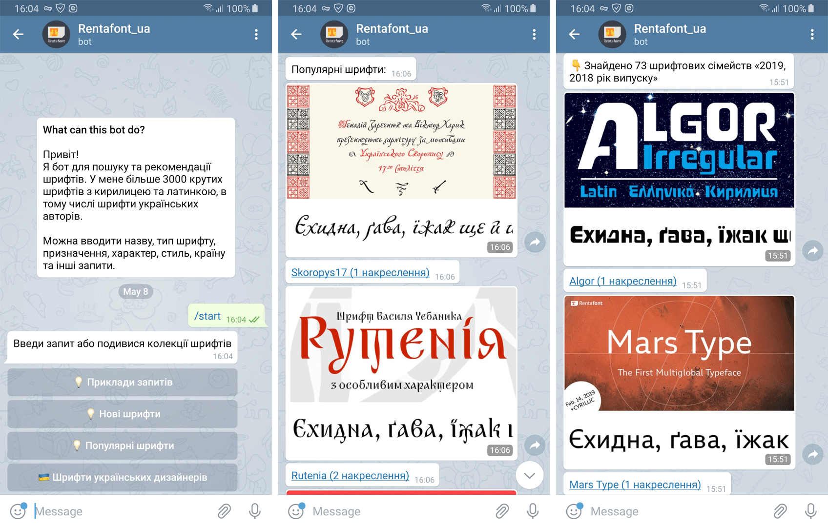 Telegram, як символ перемоги нових технологій над старою диктатурою, надихнув команду Rentafont на створення бота, який робить наші шрифти ще ближче до користувачів», — каже засновник сервісу Євген Садко.