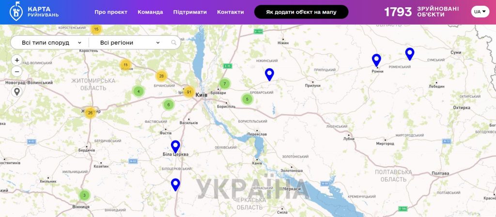 Онлайн-мапу створили з метою допомогти зібрати кошти на відновлення усіх зруйнованих об’єктів.
