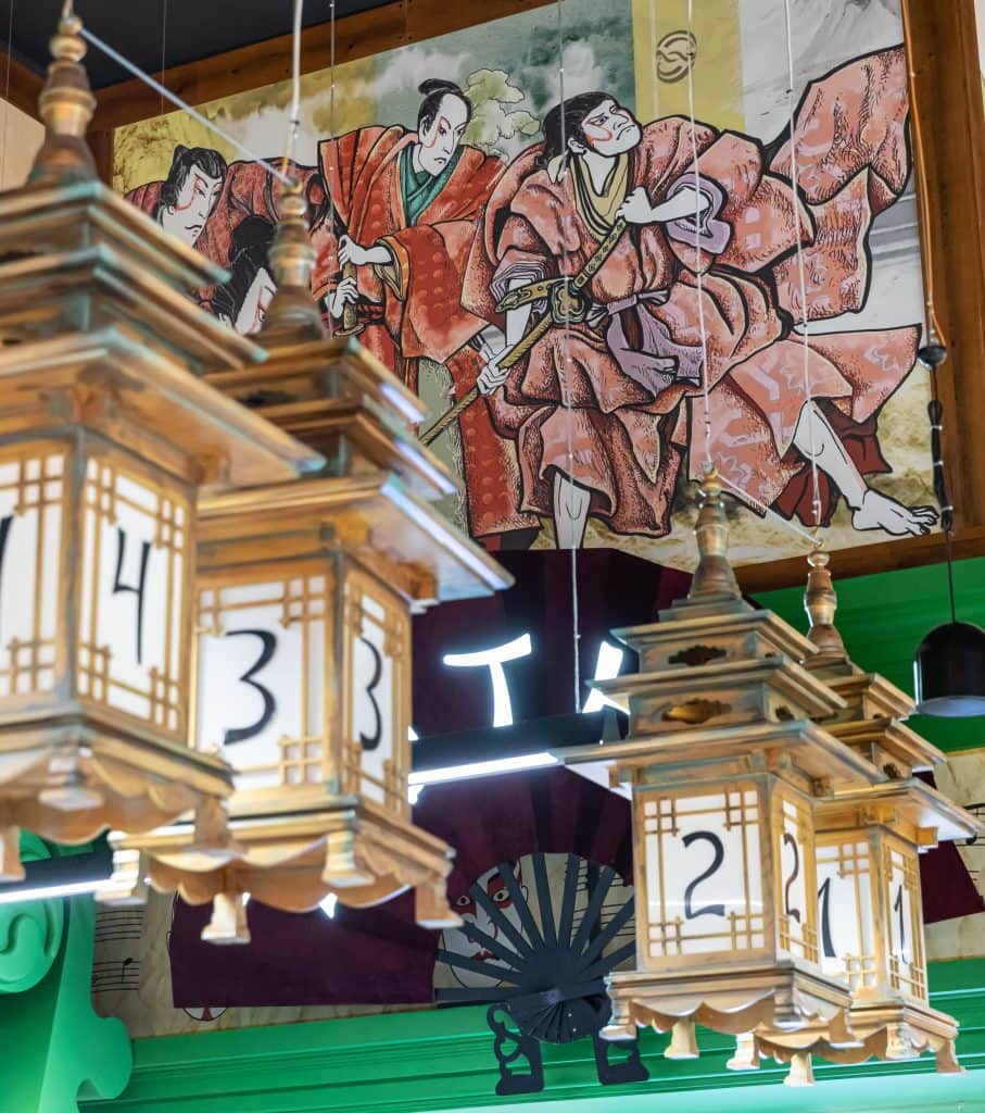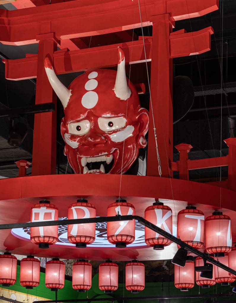 У дизайні використано впізнаванні елементи будівлі найдавнішого японського театру Канамарудза ― різьблені склепіння, ліхтарики та традиційний декор.