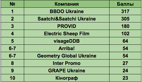Всеукраинская рекламная коалиция представила подбила итоги рекламного сезона 2016/2016 и представила Рейтинг креативности и мастерства агентств.