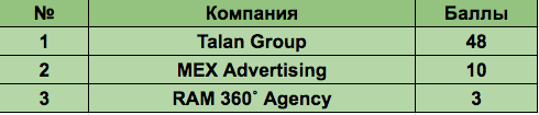 В категорию Агентства маркетинговых сервисов подались 3 участника, которые распределили между собой призовые места следующий образом: