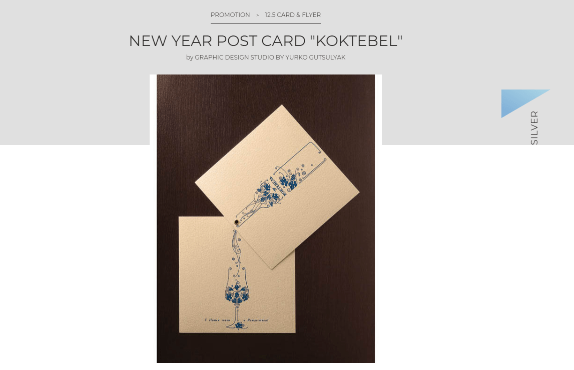 А першу нагороду для України отримала новорічна картка “Koktebel” від Юрка Гуцуляка у 2008 році. Це було срібло: