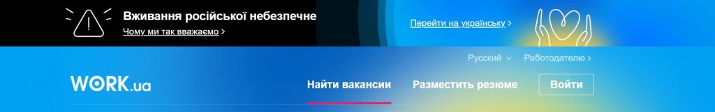 Work.ua на кожній сторінці російськомовної версії почав закликати переходити на українську та пояснив, чому це важливо.