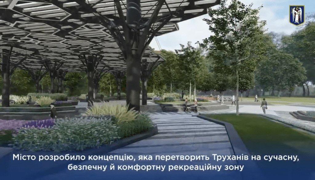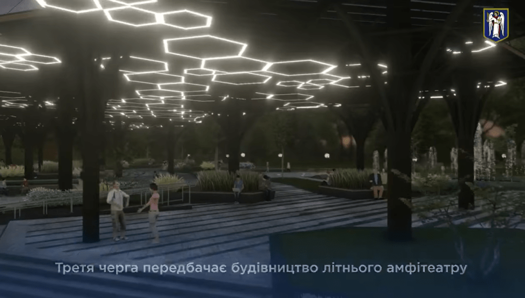 Побудують навіс-перголу, що вдень захищатиме відвідувачів від спеки, а вночі – підсвічуватиметься. З’являться велодоріжки.