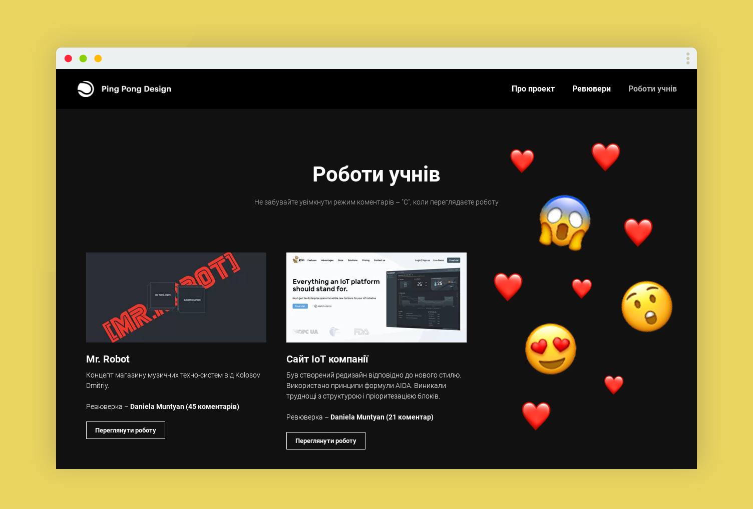 «Коли я розвивався, як UX/UI дизайнер, щоб отримати фідбек, потрібно було йти на курси. Про таку платформу як Ping Pong Design міг тільки мріяти», – пише про свою мотивацію засновник платформи Сергій Малєй.