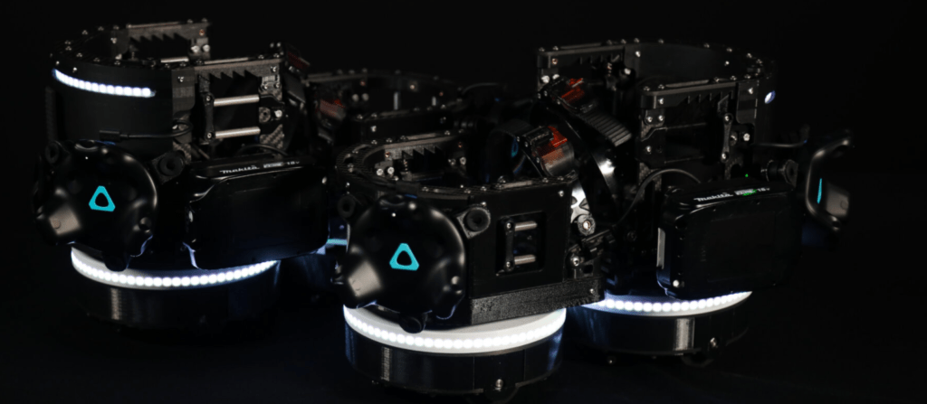 Для відстеження руху в VR використовуються шайби Vive Tracker від HTC. Вони дозволяють точно відстежувати переміщення і синхронізувати роботу моторів із рухом користувача.