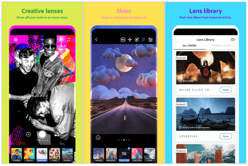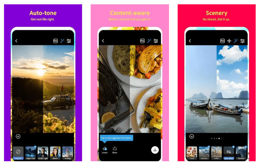 Можна використовувати Adobe Photoshop Camera і під час зйомки. Тобто фоторедактор буде працювати в режимі реального часу в видошукачі.