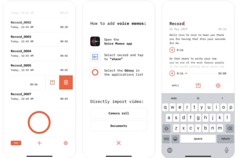 За допомогою Odrey користувач може також редагувати повідомлення прямо в додатку та одразу надсилати його у соціальні мережі або месенджери. Немає потреби копіювати повідомлення в інші текстові редактори.
