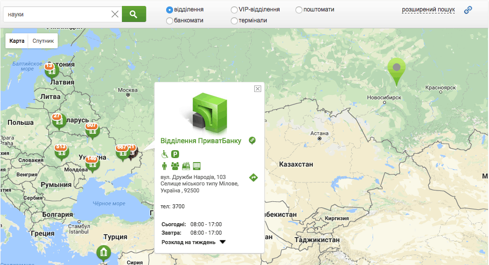 Вопросы вызвал поиск отделений. Первая же попытка найти отделение по названию улицы выдало очень неожиданный результат: