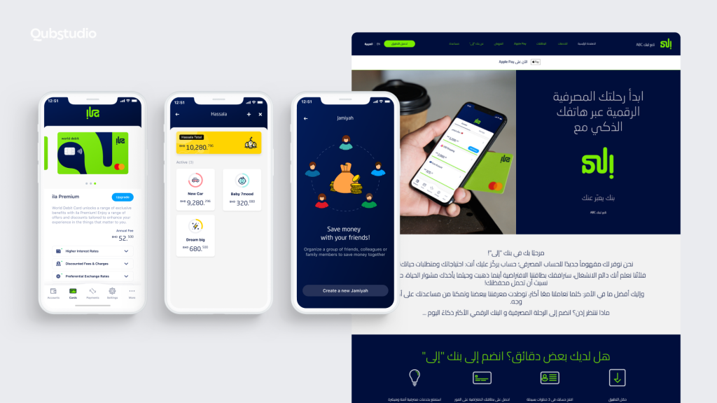 Qubstudio розробляє мобільний додаток ila Bank вже понад рік. Дизайнери та бізнес-аналітики тісно взаємодіють із проєктною командою з Бахрейну.