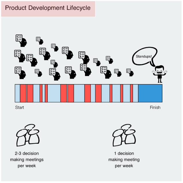 У будь-якому іншому випадку – це найчастіше марна трата часу. Тому що більша частина розробки продукту складається з: 1) власне написання і компонування коду (building), 2) прийняття рішень. Перший пункт очевидний (команда зайнята власне створенням продукту), але другий пункт – це те, що ми розглянемо, бо на мітапах якраз і займаються обговоренням рішень (принаймні мають цим займатися).