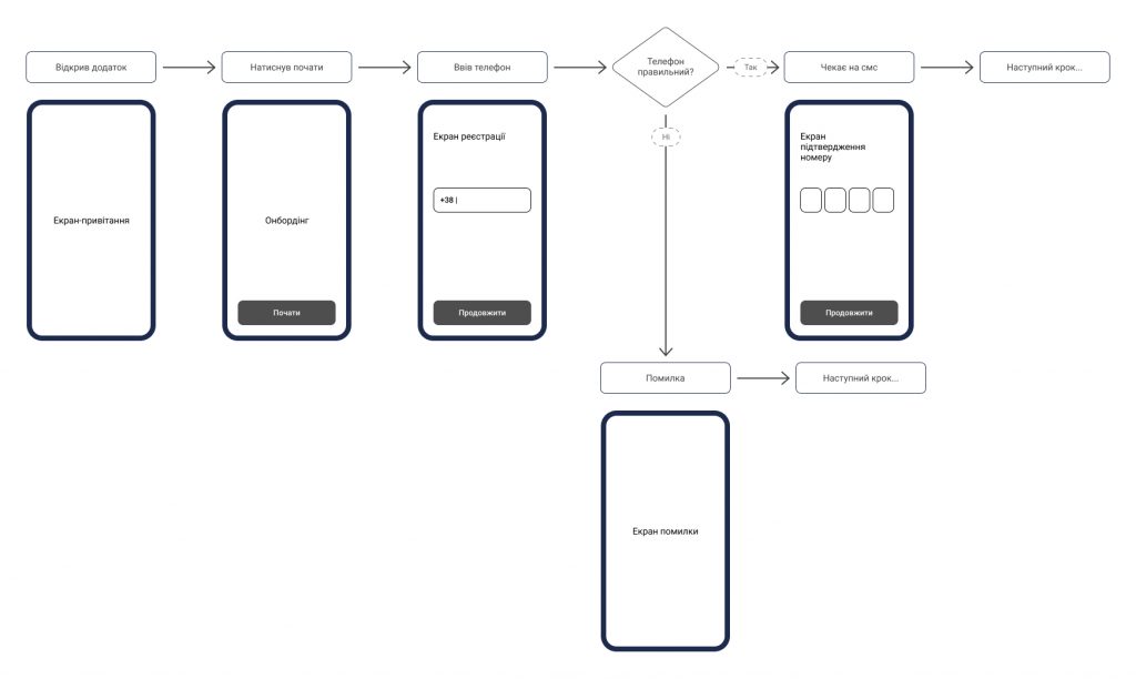 В цьому й уся цінність карти сценаріїв – не загубити розгалуження шляхів та екрани. Не просто сидіти та згадувати, чи всі випадки та помилки враховані, а підійти до цього, як до побудови процесу.