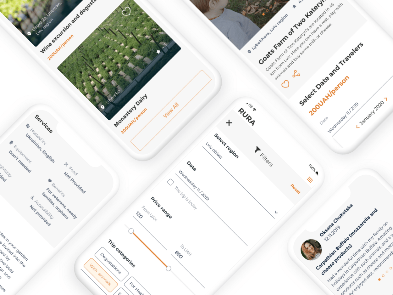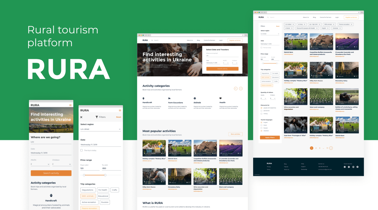 Чи бували у вас ситуації коли маєте декілька вільних днів і не знаєте, що цікавого запланувати, а на тривалий відпочинок не вистачає часу або грошей? Саме тому команда випускників OffGrid Design School зголосилася попрацювати над вирішенням цієї проблеми. Їм замовили створити онлайн-платформу, де фермери могли би представляти свої екскурсійні послуги, а туристи – шукати для себе цікаву активність на вихідні. Спеціально для Telegraf.Design команда розповіла про розроблення RURA, що допоможе фермерам розвивати свої господарства й залучати інвестиції на розвиток фермерської діяльності.