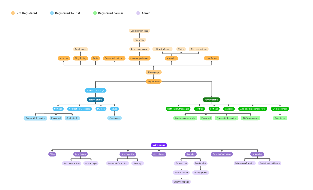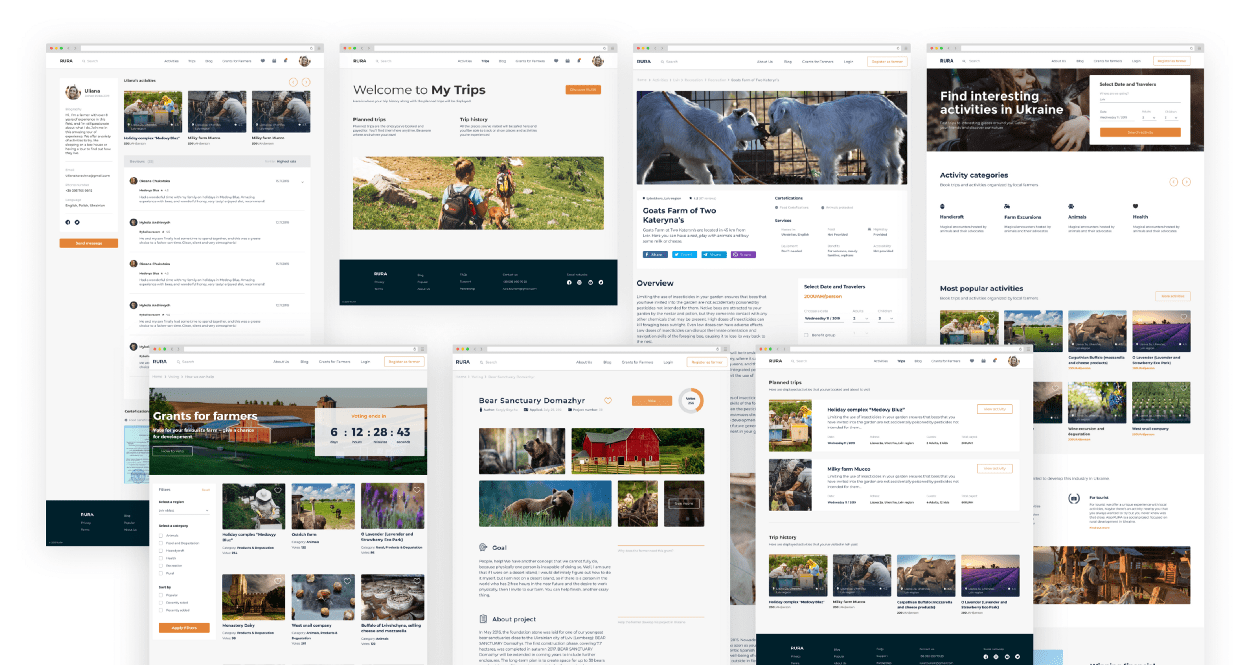 Після завершення тестування, ми вдосконалили спосіб реєстрації для фермерів та їхніх послуг у платформі, спростили процес оплати, покращили календар, зробивши його гнучкішим для відображення більшої кількості заброньованих місць та доповнили сторінки послуг корисною інформацією. Це додало нам впевненості у правильності наших фловів та роботи системи в цілому. На цьому фаза Ideation закінчилась, ми чітко розуміли який сервіс ми пропонуємо і які завдання покриваємо. Після цього ми сконцентруватися на тому, щоб зробити RURA привабливою і приємною у використанні.