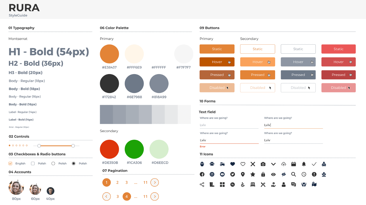 Важливим завданням було створити стайл-гайд та уважно підійти до вибору кольорів, набору іконок та контролів. Не менш важливим на цьому етапі був вибір шрифту, який би підтримував загальну ідеологію бренду. Все мало гармонійно пов’язуватися між собою.