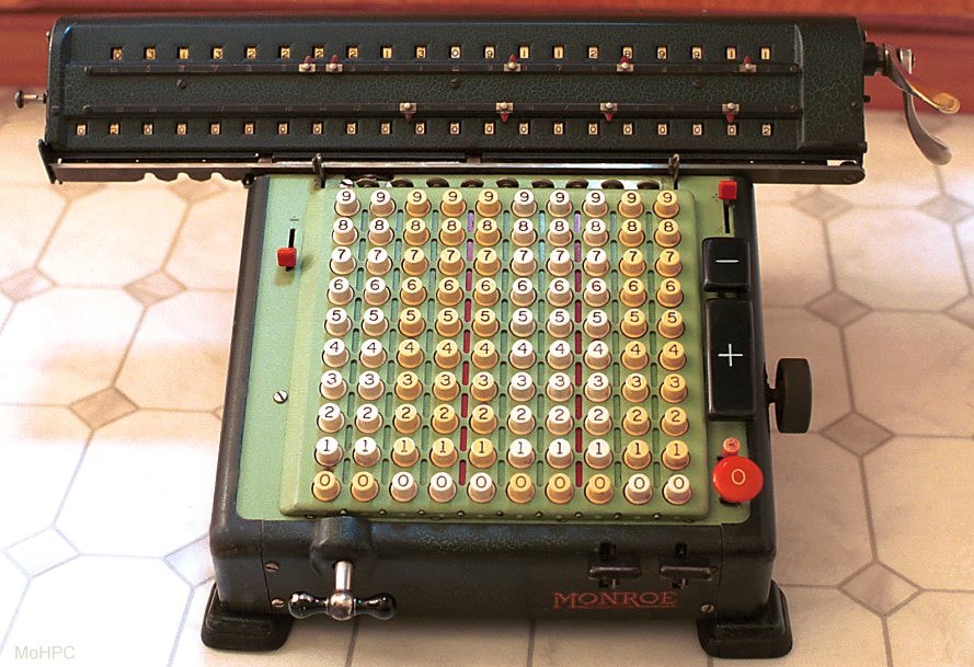 Ознакомиться с полной историей и исследованием, которое стоит за таким решением, можно на 99percentvisible. Но в данном случае важно отметить, что когда Bell System спросила Texas Instruments и Sharp, почему панель набора на калькуляторе была спроектирована именно так, они ответили, что не проводили никаких исследований, чтобы определить необходимую модель. Они просто взяли пример с механических калькуляторов (как показано ниже). На этих калькуляторах номера от 0 до 9 были расположенны снизу вверх.