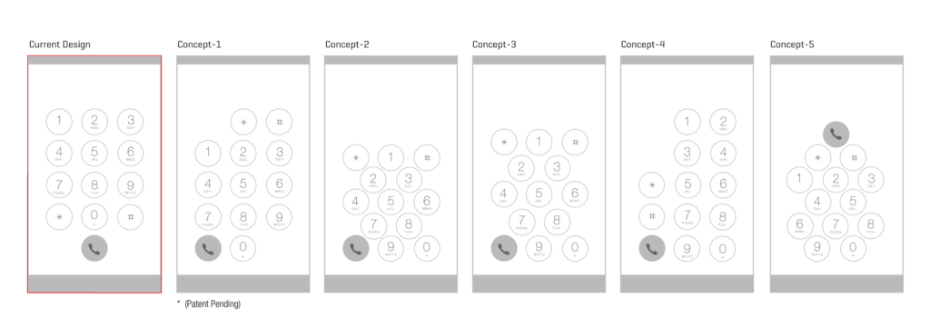 Чтобы воспроизвести исследования Bell Systems в современном контексте, я разработал несколько альтернативных панелей набора для смартфонов (см. ниже). Вот 6 моделей для исследования (5 новых и одна существующая):