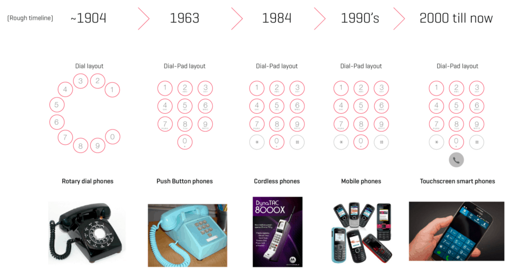 Есть кое-что очень важное в изображении выше. Несмотря на значительную трансформацию в эргономике и изменения в физическом форм-факторе, дизайн панели набора номера не менялся с 1963 года.