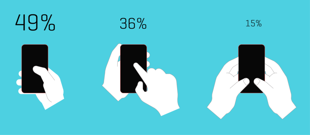 Стив Хубер провел исследование того, как мы держим телефон. Он пришел к выводу, что большинство из нас держит его снизу так, что большой палец находится в правом нижнем углу экрана (учитывая, что 90% населения правши).
