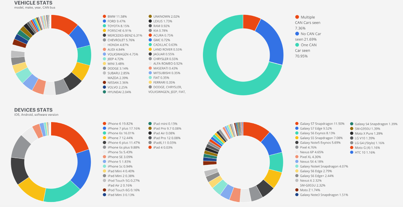 Понимание наших пользователей и их привычек сыграло решающую роль для принятия объективных решений. В этом случае мы должны были знать, на каких автомобилях ездят наши пользователи (в частности, их физические размеры). Какой процент юзеров имеет CAN-шину на своих автомобилях? А также типы их мобильных устройств, чтобы сбалансировать размеры и контрастность визуальных элементов.