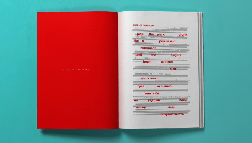 Гра з ілюстраціями й крута типографіка допомогли перенести на візуальну мову літературу Буковскі. Це проєкт перевидання збірки Чарлза Буковскі «Play the Piano Drunk Like a Percussion Instrument until the Fingers Begin to Bleed a Bit», яка вийшла ще у 1970-ті роки XX століття. Над дизайном працював Дмитро Цапко, керівник агенції Tough Slate Design.