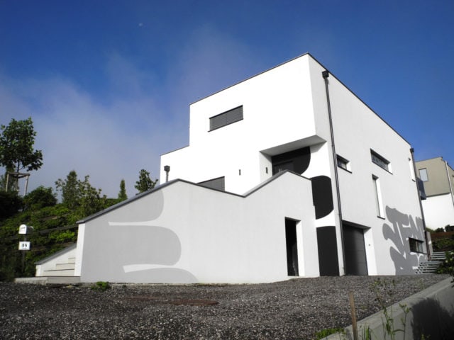 Гиперсквизер тэг от графитчика Stohead на модернистском лаконичном здании.